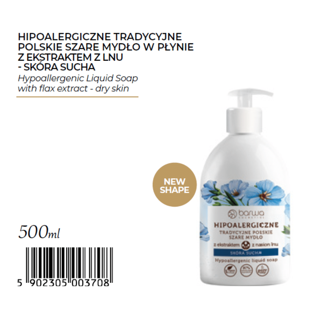 Barwa Hypoallergenic Liquid Soap is part of our hypoallergenic body care line, made with 95%+ natural soothing ingredients. Dermatologically tested and gentle for dry, sensitive, and allergy-prone skin, it’s also suitable for atopic skin. Selected variants contain hemp oil to help relieve itchiness and support skin prone to psoriasis.