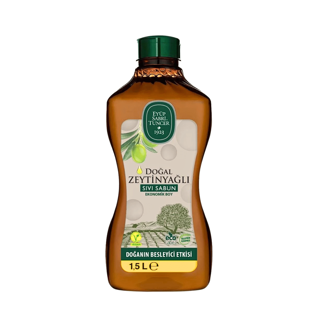 Wet your hands, take in your palm a suitable amount of Eyüp Sabri Tuncer Natural Olive Oil Liquid Soap 1,5 Liter, lather up with plenty of water, gently rinse