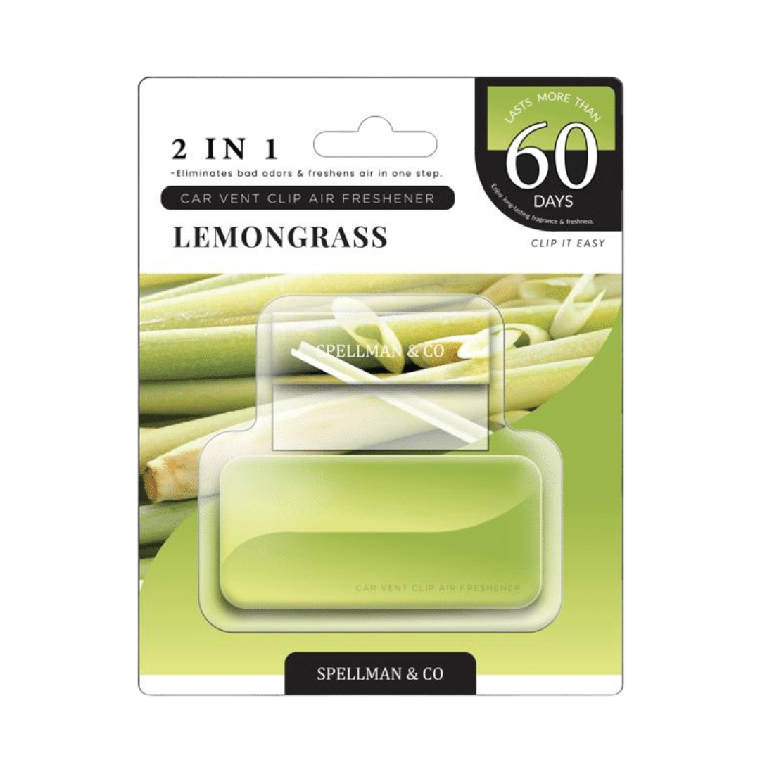 Awaken your senses with S&CO CVC 2IN1 Lemongrass Car Air Freshener, a refreshing burst of citrusy vitality that keeps your car smelling bright and clean. Infused with the crisp aroma of lemongrass, balanced by green herbal notes and a hint of zesty lemon peel, it creates an energizing atmosphere that refreshes your mood with every drive.